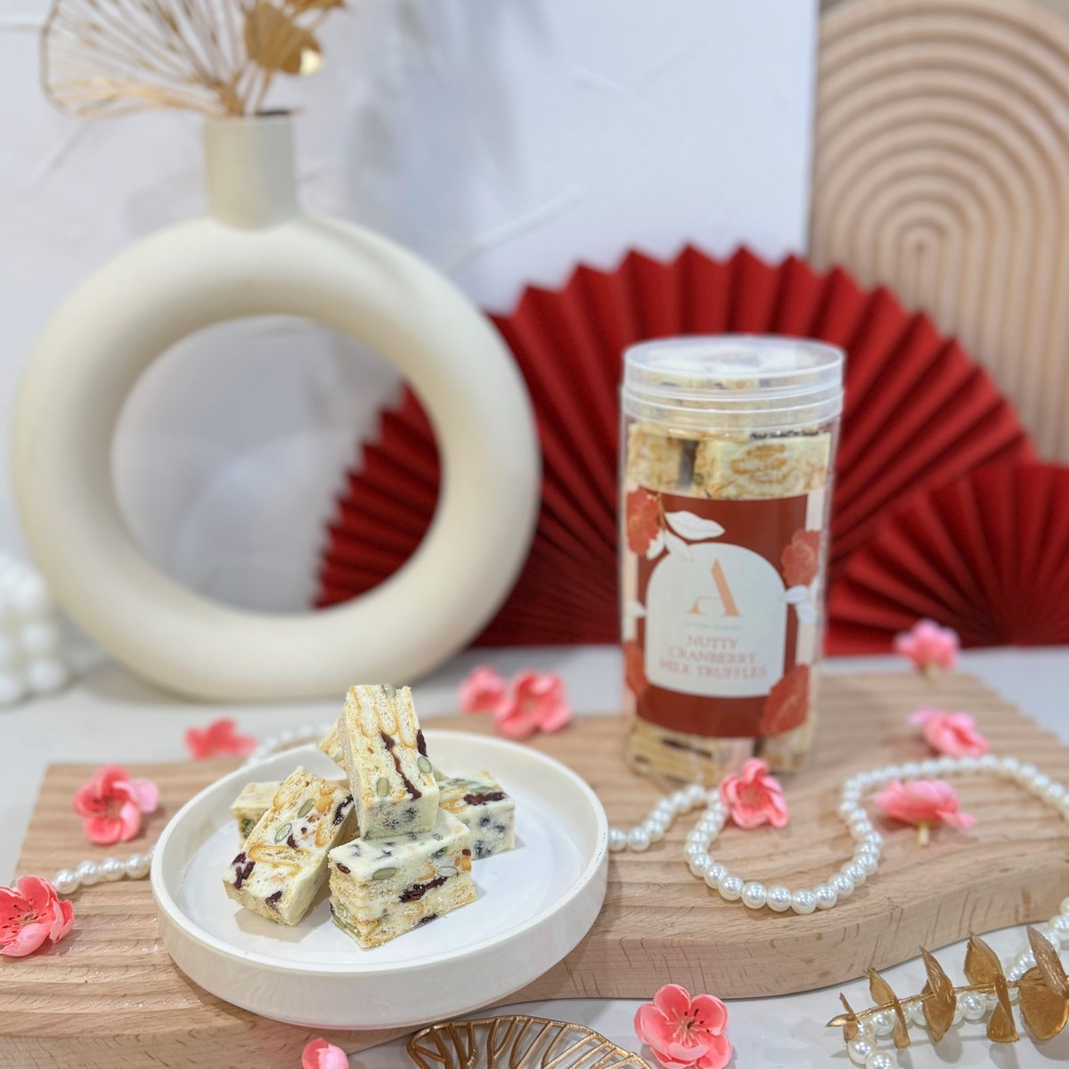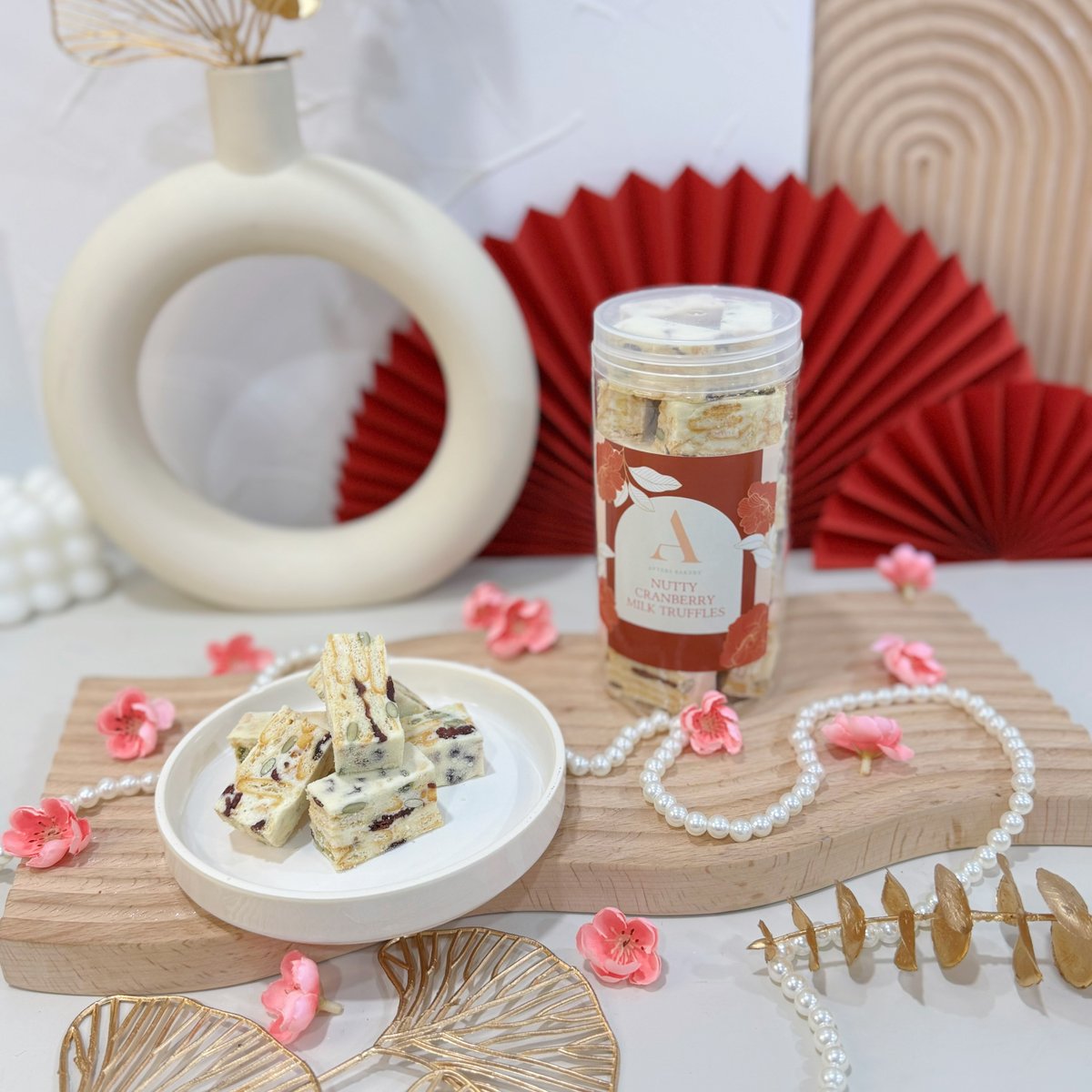 Our nutty berry bites are indulgent without overwhelming. Each crunchy-yet-chewy nougat contains tangy dried berries and a light creamy and nutty core - back by popular demand this CNY!