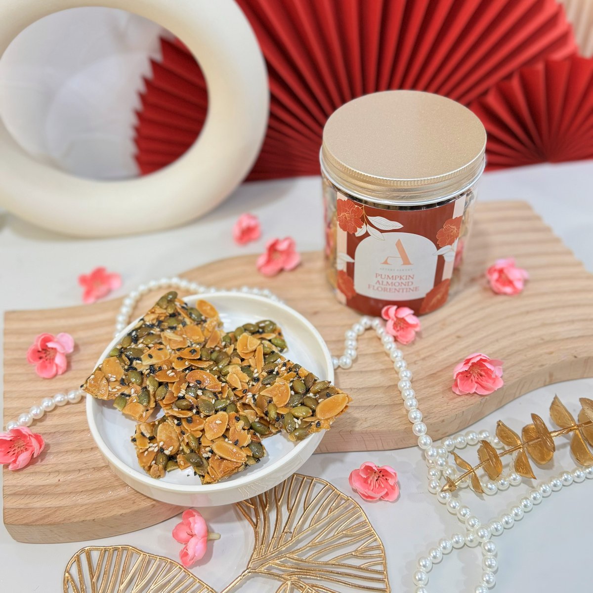 Rich in flavour, and low on the sweetness. Packed full with crunchy almonds and pumpkin seeds, our florentine crisps are the perfect healthy addition to your CNY snack bar!